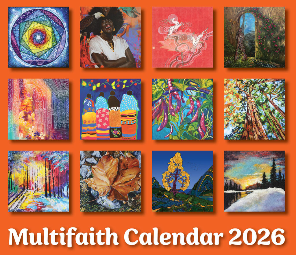 Published annually by the Multifaith Action Society (MAS), the Multifaith Calendar (MFC) is a unique educational resource that facilitates and promotes understanding of religious observances, occasions and festivals important to a wide spectrum of cultural and faith communities. Featuring 18 pieces of original art from visual artists across North America and Internationally, the new 2026 edition marks the 40th anniversary of our Calendar and features the theme: Growth and Change